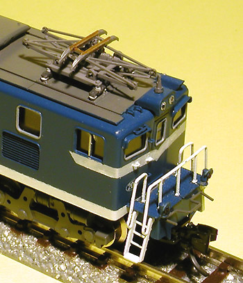 実車について:秩父鉄道所有のD級50t電気機関車です。日立製作所で昭和38年に201〜203の3両が製造され、出力はデキ100型より増強され920kwとなりました。そのため軽量の車体で牽引力を稼ぐため、この機関車の最大の特徴となるL型軸梁式の台車が採用されました。 |